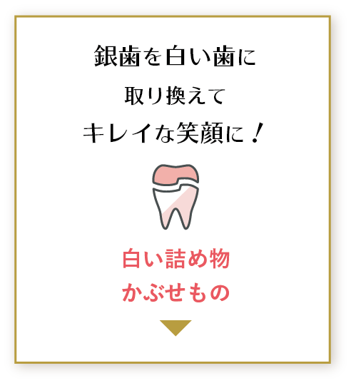 セラミックに一部強化プラスチックが入った材質のつめものです。奥歯の金属(銀歯)のつめものを白くしたい方におすすめです。